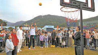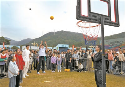 开幕式上,“浙BA”温州队球员戴子特、颜谋植现身“柚力全开”跨圈互动体验区,手持外形好似四季柚的“篮球”完成一记记“投篮”,引发群众阵阵欢呼。来自苍南县城的雷小琴带着女儿肖依诺参与互动并获胜,赢得了颜谋植签名球衣与百年柚树产的四季柚。“和偶像一起玩‘篮球’太开心了!”肖依诺兴奋地说。互动结束后,母女俩还逛了四季柚市集,并计划上山体验采摘。