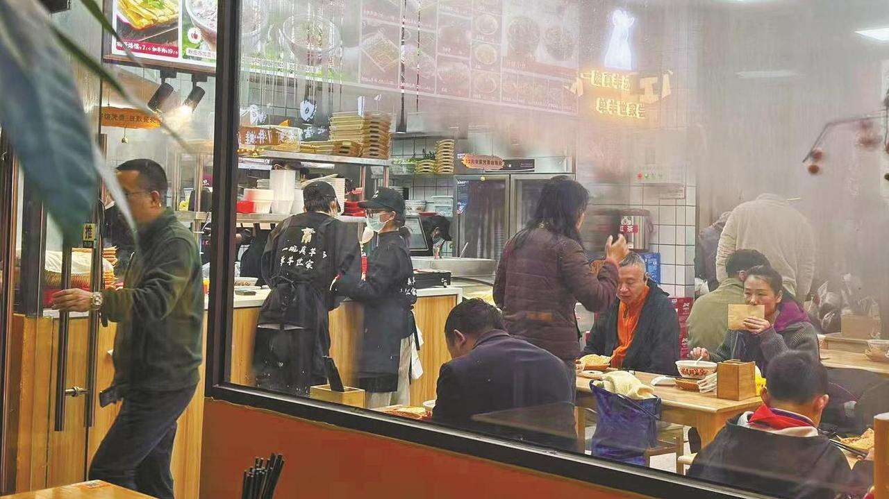 “天气爆冷,生意更好了,一天能卖上百碗羊肉汤。”在透明厨房里,忙里忙外的孙姓主管笑着说,他店里的羊肉汤、羊排、羊肉串颇为畅销,许多顾客是附近居民和上班族。