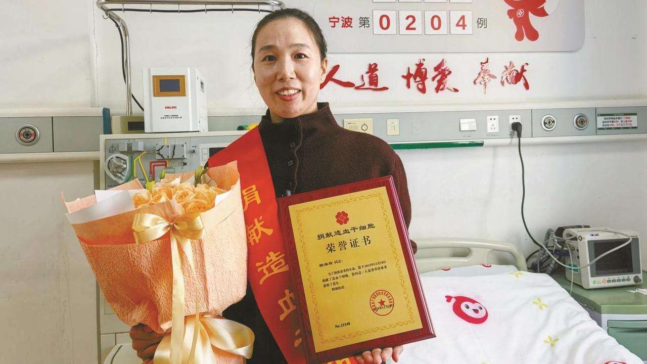 11月18日,在宁波大学附属第一医院造血干细胞采集室里,宁波市第六医院创伤外科副护士长杨海玲成功采集250毫升造血干细胞混悬液,为一名素未谋面的7岁患病儿童送去“生命火种”。她也因此成为宁波市第204例、浙江省第1299例造血干细胞捐献者,用行动践行了医护人员的责任与担当。