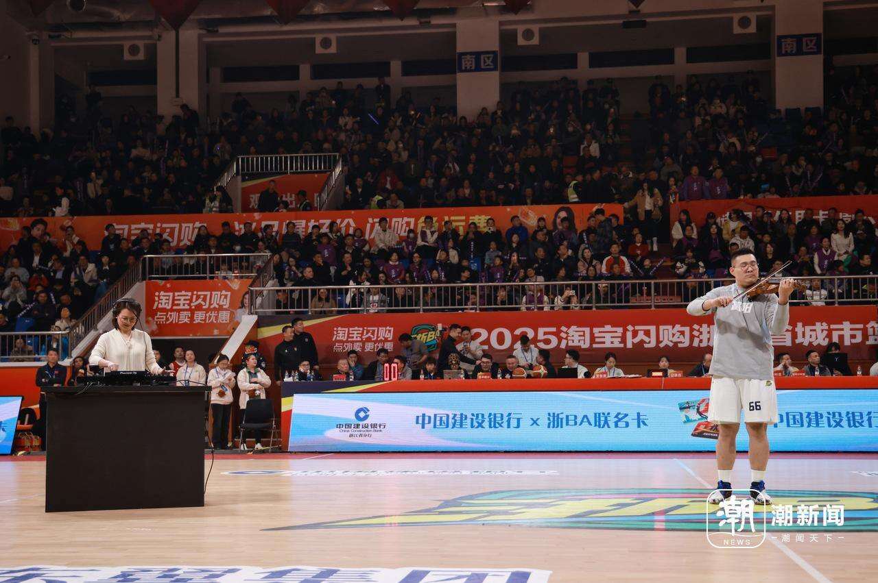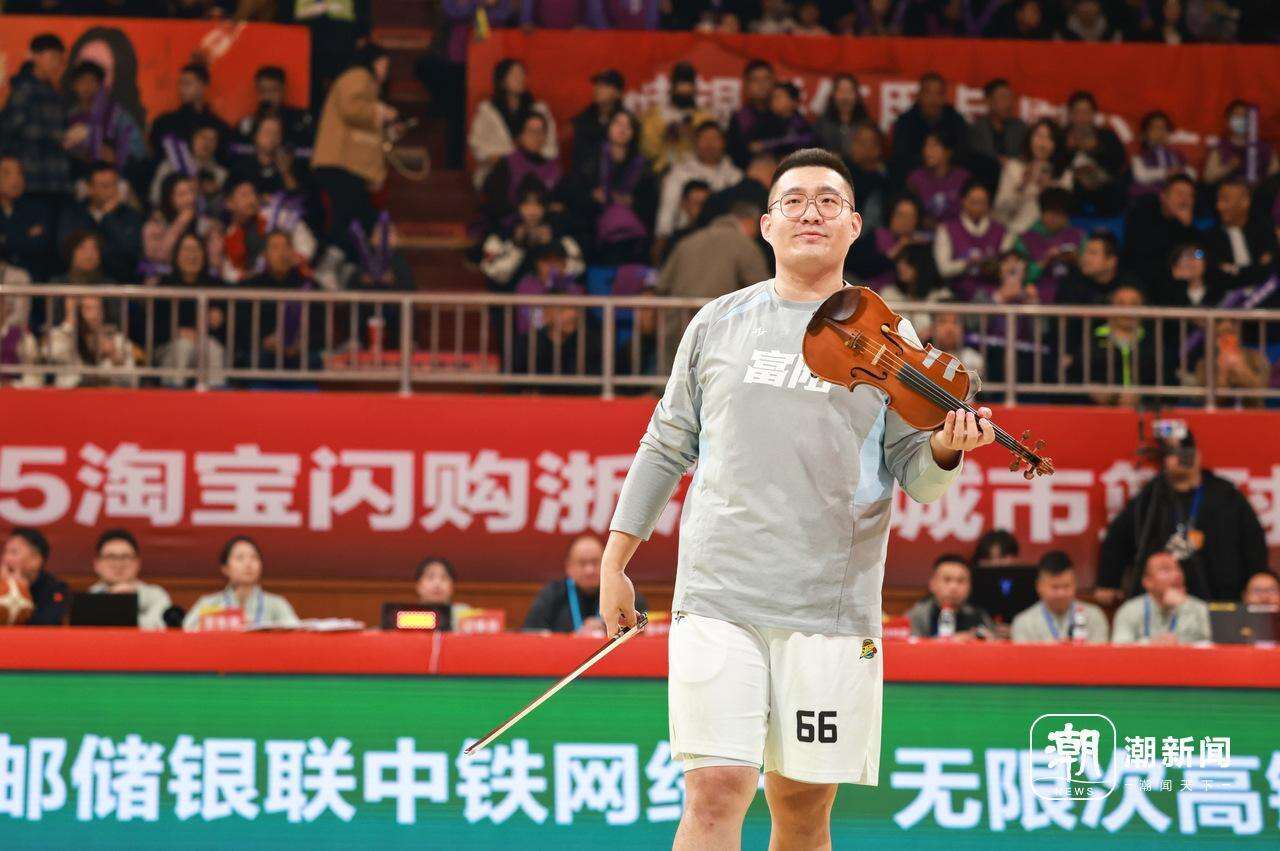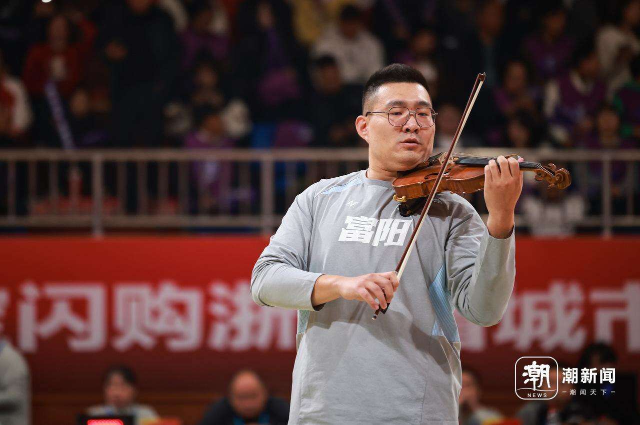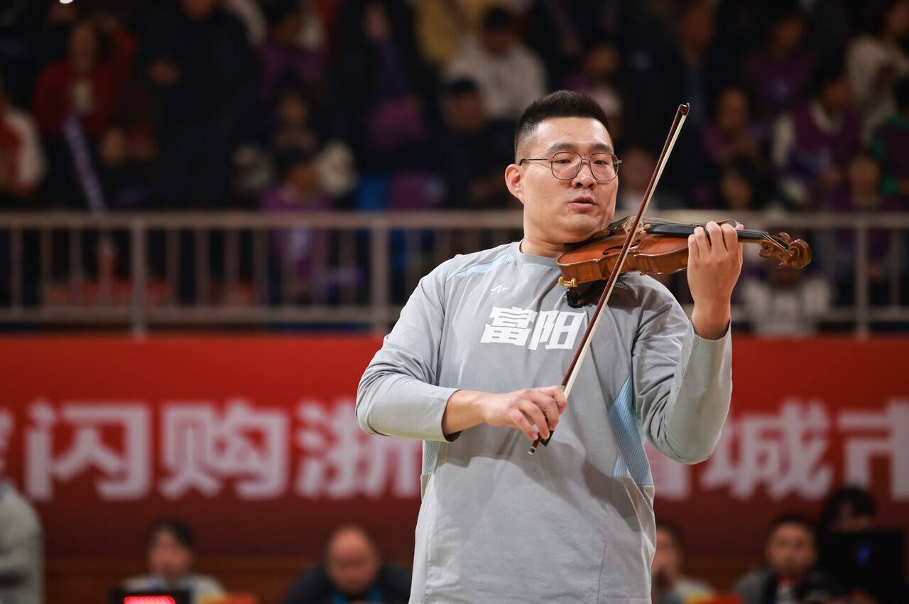 11月22日晚,浙BA城市争霸赛迎来一场焦点战,富阳队坐镇主场迎战来访的长兴队。比赛开场前,来自富阳队的66号球员陈莳一为现场的观众献上了小提琴独奏。陈莳一是一名小提琴老师,也是富阳队的内线“防守大闸”。