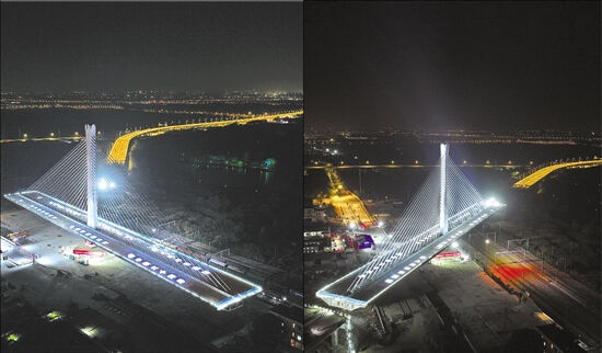 夜色中,轮廓灯勾勒下的斜拉桥如一道长虹横跨铁轨,即将连接起嘉兴市区快速路的两段引桥。嘉通集团快速路公司副总经理沈健聪告诉我们,桥梁完成转体后,将进行主梁合龙施工。预计2026年春节前,嘉兴市市区快速路环线将实现完整闭环,有效串联起嘉兴主城东南西北四个方向,市民在市本级任意一点10分钟上高架将成为现实。