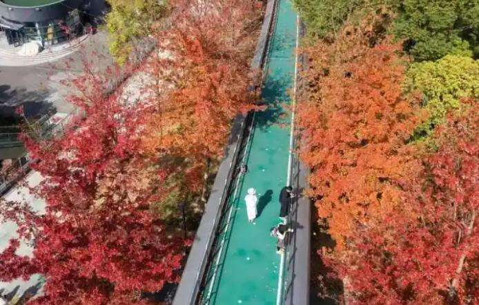 最近在朋友圈刷到一张照片——一座流线型的现代天桥,被漫天橙红金黄的枫叶温柔包裹,一下子击中了我的心。于是趁着天气晴好,赶紧出发,去赴一场与枫香的限定约会。
