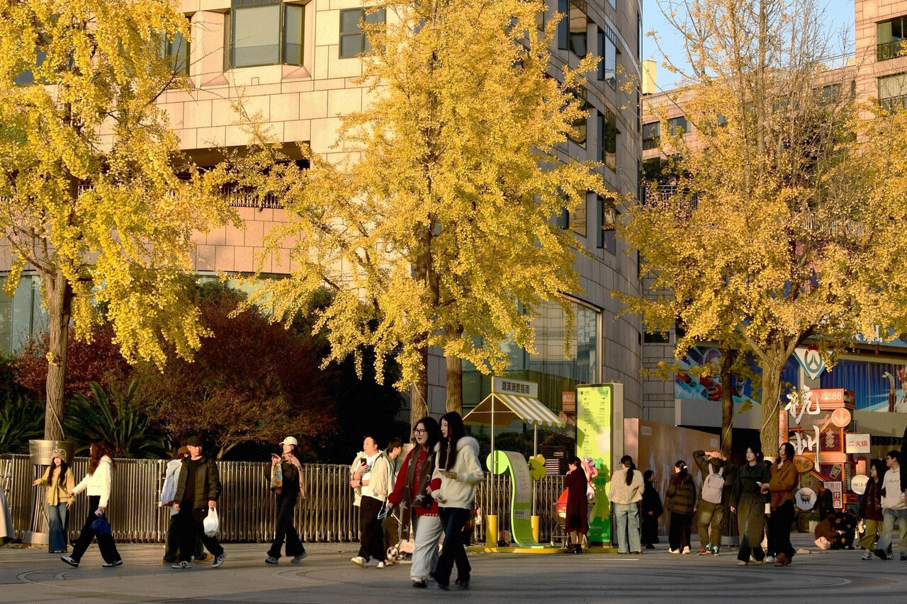 湖滨步行街的银杏黄了。里尔 摄