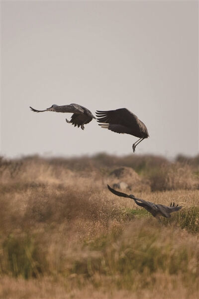 当天,正在观鸟的瑞安鸟友孔芷若,突然发现3只体态优雅的陌生大鸟在天空盘旋。凭借多年观鸟经验,她敏锐察觉到这是罕见鸟类,于是立即举起相机拍摄。“它们的头是白色的,身体浅灰,有点像鹭或者雁,飞起来时长长的脚向后伸直,降落时会自然下垂,羽大而有力,侧面看去,姿态独特,仿佛折叠起来一般……”孔芷若告诉记者,这三只鸟的飞行姿态、体型特征都与她熟悉的鸟类明显不同。孔芷若初步判断可能是鹤类,随即一边拍摄,一边悄悄跟随鸟儿的飞行路径。经过数公里路程的耐心追踪,她终于在地面成功抓拍到清晰的影像。“拍到照片的那一刻,我的手都在颤抖。”她激动地说。