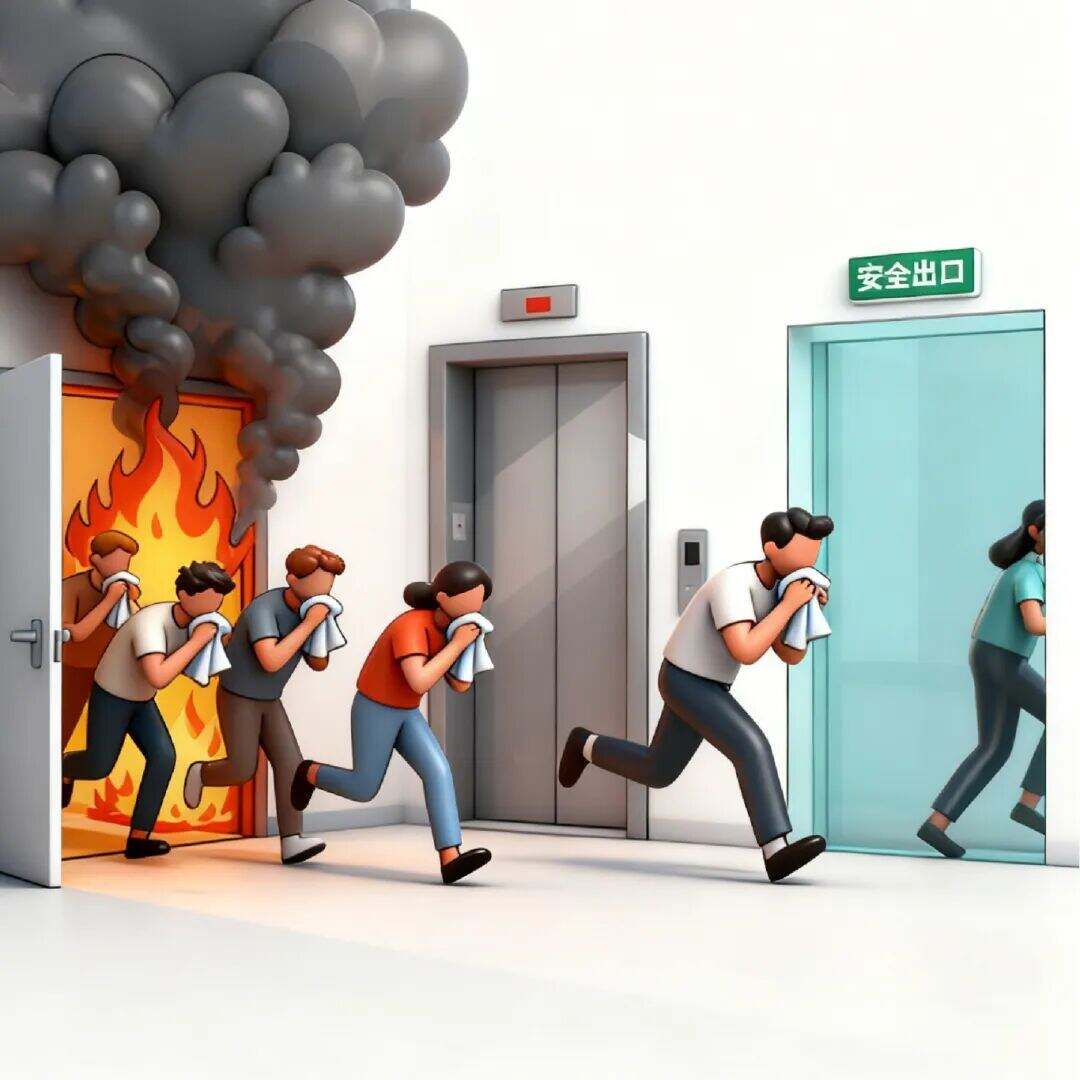比如,浴室是不是安全避险场所?很多人都选择“是”。但正确答案为“不是”,浴室通常空间狭小、通风不畅且易燃物多,并非安全避险场所。正确的做法是:提前熟悉所在环境的逃生通道,规划至少两条逃生路线,确保火灾发生时能快速撤离至开阔安全区域。