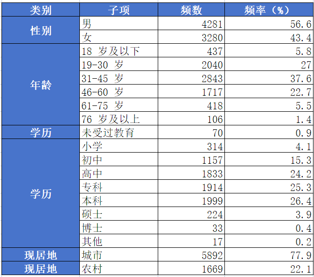 本次评估共收集公民有效问卷7561份,企业职工有效问卷3007份。调查范围覆盖全市所有区县,确保了数据的代表性。