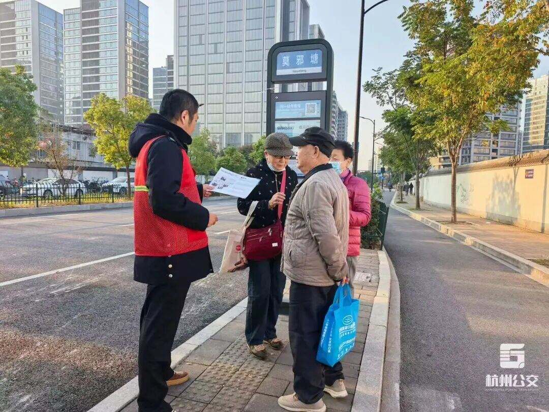杭州公交相关工作人员为市民提供线路指引。图源杭州公交公众号