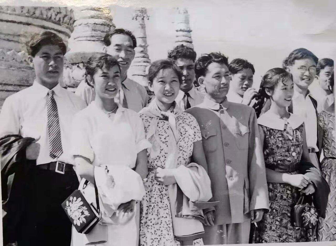 曹荃娣(前排右一)所在的云南省舞蹈团前往缅甸参加演出。受访者供图