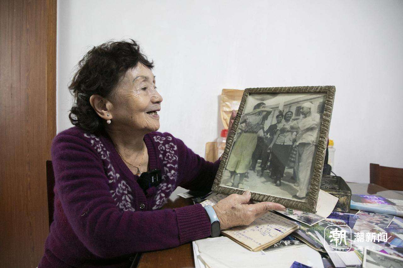 曹荃娣手中拿着的照片是1961年西双版纳傣族自治州泼水节,周恩来总理(右)走到曹荃娣(左)所在的歌舞团演员中间,和大家共跳民族舞蹈。记者 钱洁瑗 摄