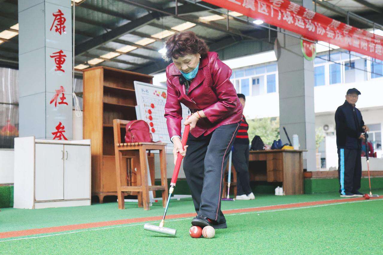 曹荃娣已经打了近40年门球,如今是上虞区门球运动协会里年纪最大的球员。通讯员 于江 摄