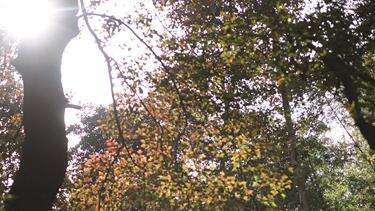 古道溯清溪的峡谷而上,两旁都是岩壁的山坡。许多树木的叶子,在这个时节都泛着满树的黄色或红色,在阳光下仿佛被浓重的颜料染过一般。