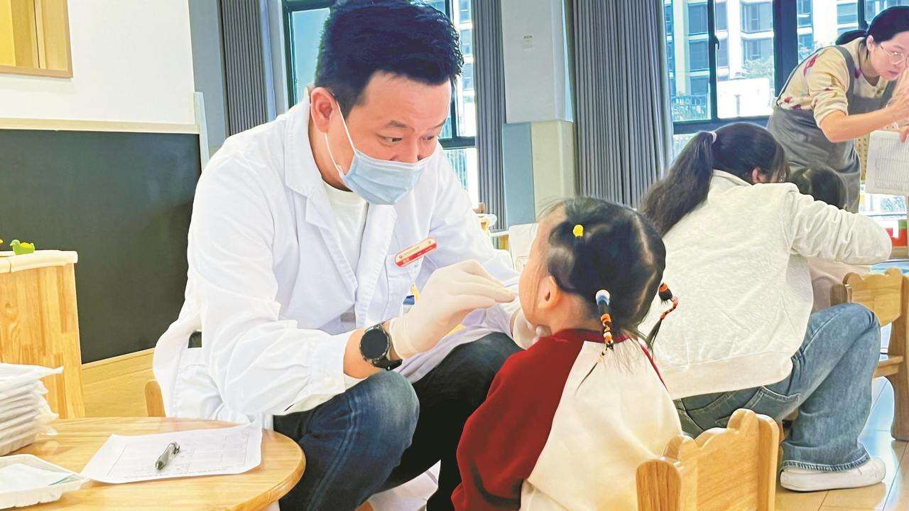 托班家长最关心的是孩子的安全和健康,“医育融合”成为不少幼儿园关注的重点。奉化区岳林街道金海幼儿园东峰园区率先实行2—3周岁婴幼儿托育服务试点。“我们实行混龄照护,依托邻近中医院的优势,日常开展中医问诊、小儿推拿、营养食谱推荐、家长保健指导等特色服务。”该园园长蒋自奋介绍。据了解,目前奉化已有5家医疗机构与26个幼儿园(区)结对,织密医育协同网络。