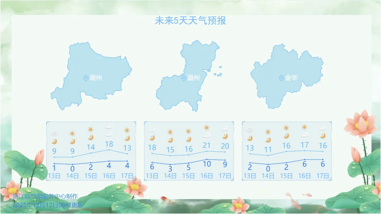 其实从昨天(12月12日)午后起,全省气温均出现倒挂现象,最高龙泉18.9℃也出现在中午12时,之后气温就一直走下坡路,体感较冷。