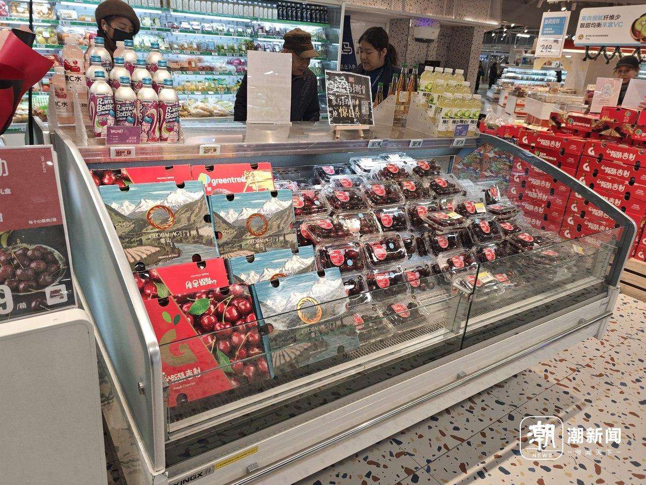 杭州西湖文化广场的盒马鲜生超市,首批海运车厘子3天前上新,入口处的水果区里大促销正在进行。