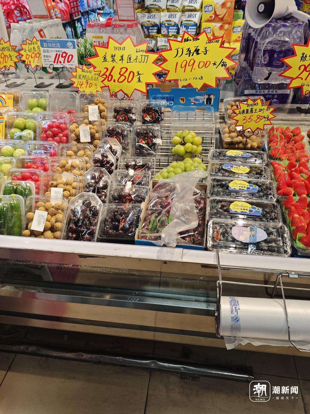 商超导购员告诉记者,相比3天前在售的空运车厘子,目前的价格已经非常亲民了,“一个月前过来,两款礼盒每箱至少要贵100元,连塑料盒装的4L车厘子,一盒也要70多块钱。”