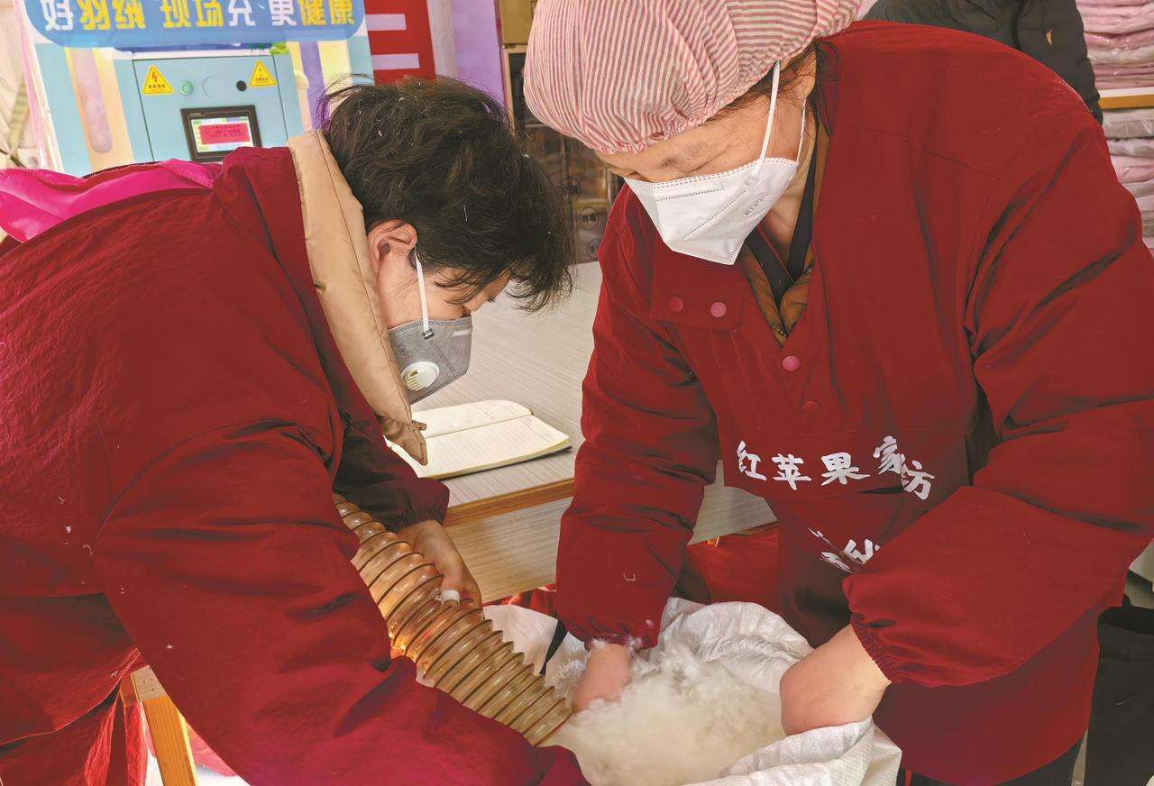 一方是怀旧的暖意。周边居民抱着些式样老气、颜色却依旧鲜亮的旧羽绒服来,交给梅丰静。“料子还是好的,扔了可惜,改条被子吧。”那里面或许存着儿子大学时代的记忆、女儿出嫁前常穿的衣裳,或是老伴多年前买的第一件像样冬衣。绒絮被梅丰静小心地取出、分类、称重,再灌进崭新的被套里。旧时光的温暖,就这样被妥帖地续上了新的生命。