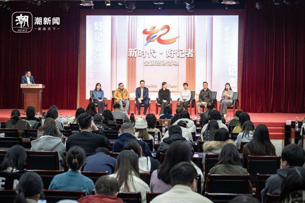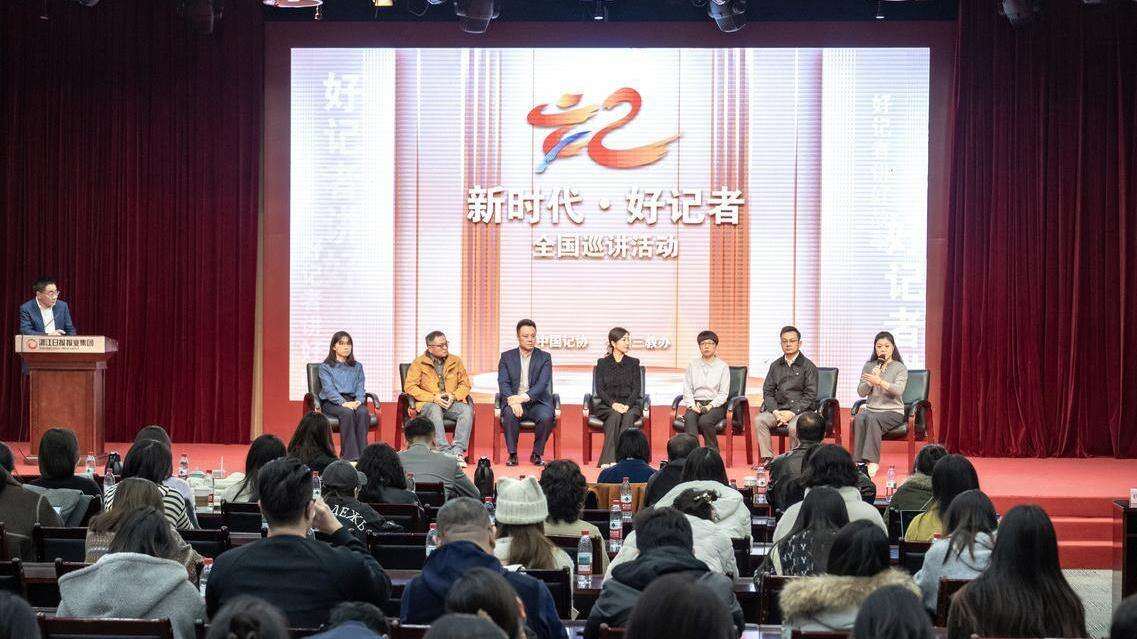 12月18日,由中国记协、全国三教办组织的2025年“新时代·好记者”全国巡讲活动走进浙江,7名2025年“全国十佳新闻工作者”获评代表、第十二届“好记者讲好故事”优秀选手走上台,和在杭州的省、市新闻工作代表和浙大师生代表分享了新闻工作中的采访故事、所思所悟。一场场精彩的报告会,就是一堂最鲜活的“新闻课”,在交流中,众多人心中的一个个问号也随之解开。