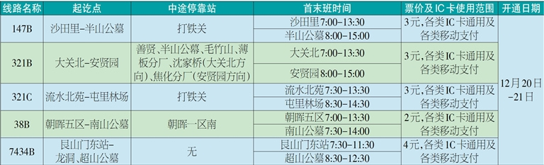 除以上6条冬至扫墓地铁接驳线外,杭州公交将在12月20日至21日开通5条扫墓快线,从市区多个枢纽站出发,快速抵达各大公墓、陵园。同时增设321B路的沿线停靠站点,减少市民的步行乘车距离。