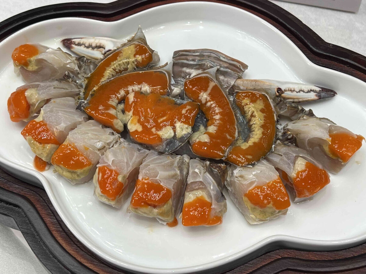 宁波红膏炝蟹。