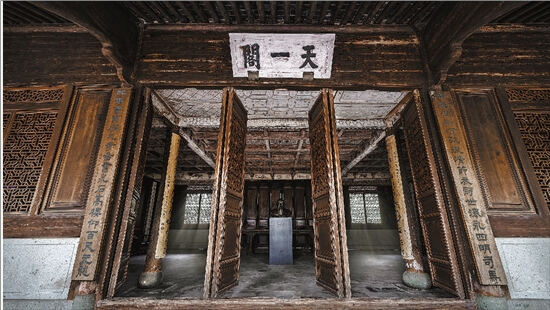 天一阁修建于明朝的嘉靖年间,原本是兵部右侍郎范钦的私人藏书处。范氏家族藏书时期,这里的存书量高达七万多卷。古代藏书常常毁于火灾。因此,在建造天一阁时,范钦首先考虑的便是防火问题。除了在藏书楼前修建园林以蓄水,还依据《易经》郑玄注中“天一生水”的说法,为藏书楼取名“天一阁”,用“地六成之”为藏书楼的正立面设六个开间。这是目前对“天一阁”名称由来和出现“六开间”的主流解释。