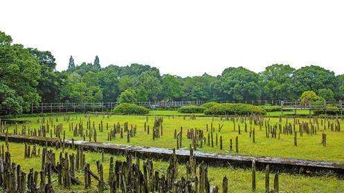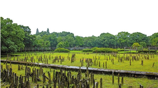 河姆渡遗址的干栏式建筑遗存。 河姆渡遗址博物馆供图