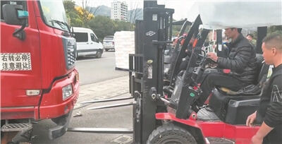 大货车本身就很重,再加上满载货物,如果让司机启动车辆挪车,就会对伤者造成二次伤害,后果不堪设想。就在这时,有人看见事故地点旁边就是一排厂房,一个念头瞬间闪过——“找叉车帮忙抬车!”