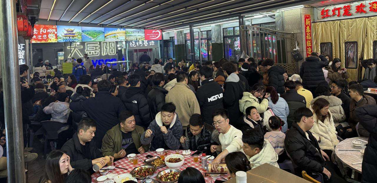 “老板,先来一手(十串)牛肉、一手牛油、一手牛筋……”傍晚5时许,湖南省岳阳市炮台山夜市街区热闹起来,定三毛烧烤总店迎来了第一拨顾客。1988年,定三毛烧烤创始人定光雄在岳阳市庙前街支起流动烧烤摊,成为岳阳最早一批烧烤人之一。根据岳阳市烧烤行业协会统计,经过近40年发展,岳阳全市烧烤门店超2000家,从业人员5万多人,年产值超20亿元,成为当地一大特色产业。