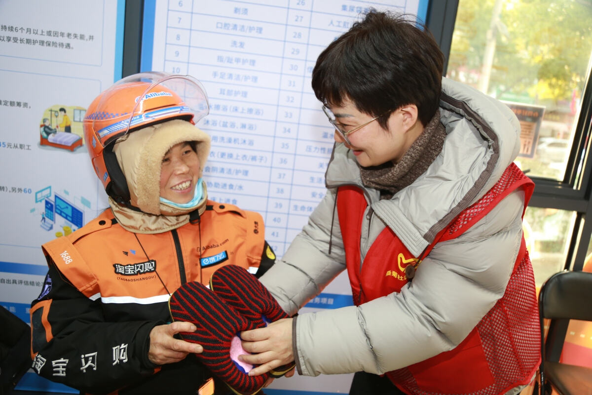 “每天骑车跑几十公里,风往裤脚里钻,脚冻得跟冰疙瘩似的。”女骑手小吴一边说,一边踩了踩脚,“这鞋一穿上,真是从脚底暖到心里。”当听说这些鞋都是一位奶奶亲手所做且已坚持了十四年时,她沉默了片刻,轻声说:“这棉鞋里的心意,比什么都珍贵。”今年,依托驿站“微小心愿认领”,“棉鞋奶奶”与桑菊驿家实现了爱心联动,对接了桑菊驿站新就业群体的保暖需求。