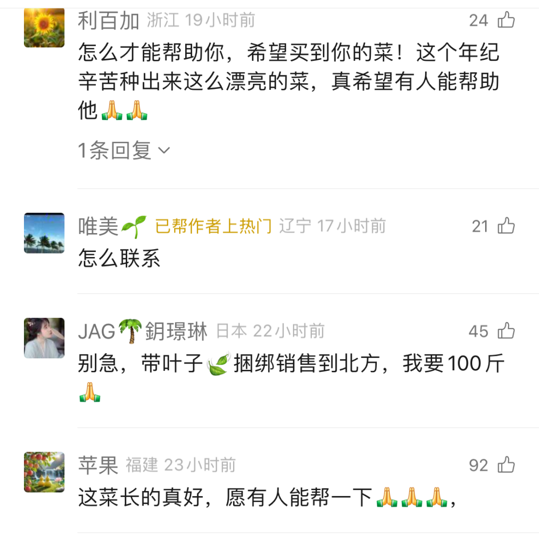 德清县供销集团也加入了这场爱心助农行动。“我们了解到这个情况后,立即与王师傅对接。我们承诺,只要还有需要销售的蔬菜,我们都会通过集团的销售渠道帮助对接,确保这些蔬菜都能找到销路。”供销集团德供传媒负责人周进进表示。