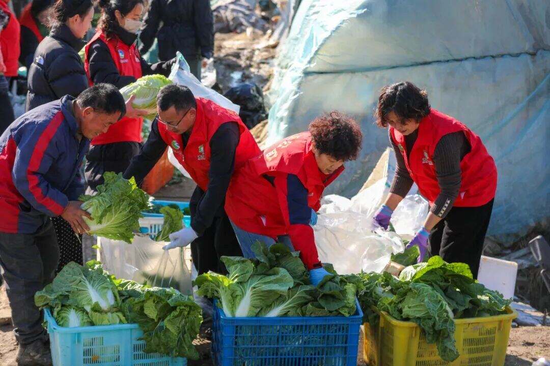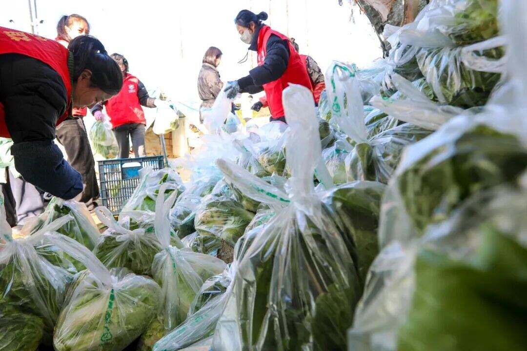 一支由公益组织和村干部组成的志愿者队伍迅速集结,他们分工协作,有序地进行着蔬菜的采摘、分拣和打包工作。