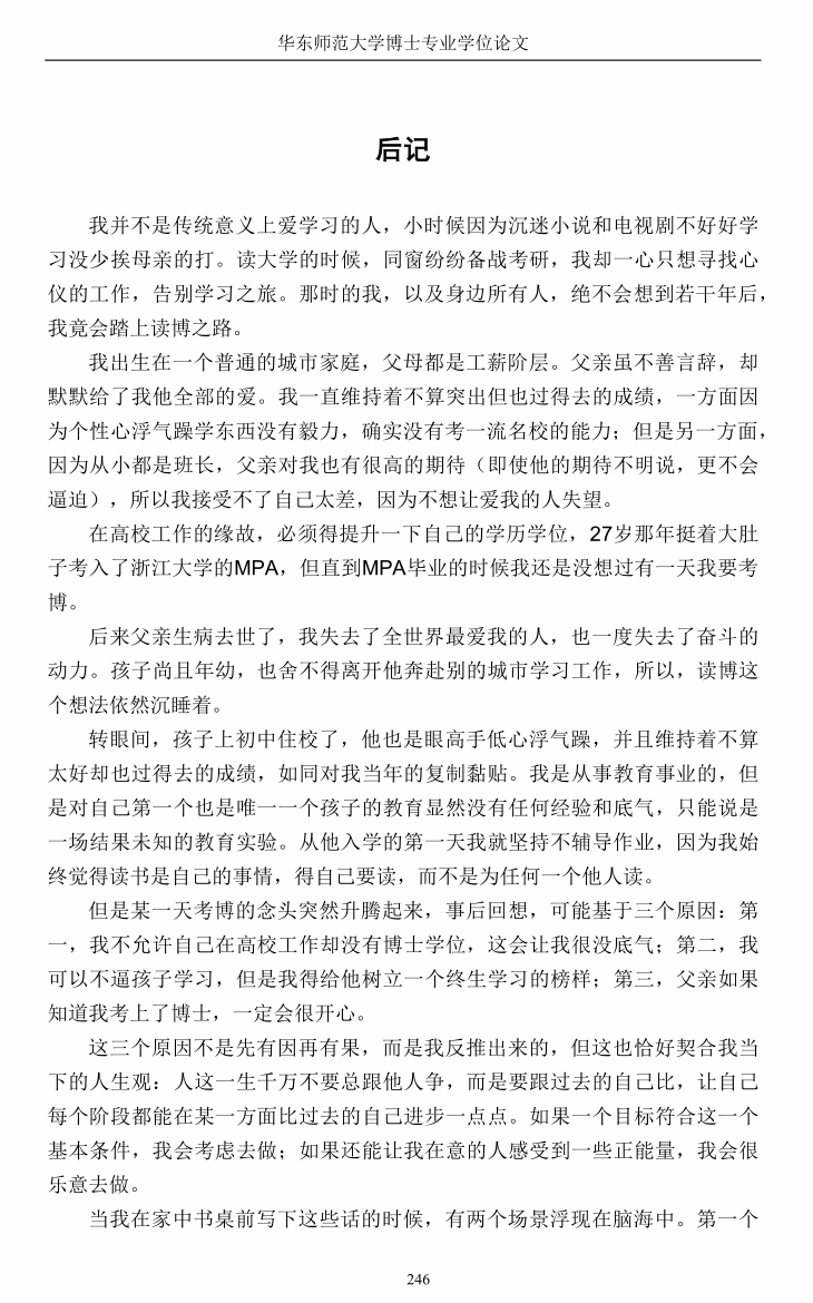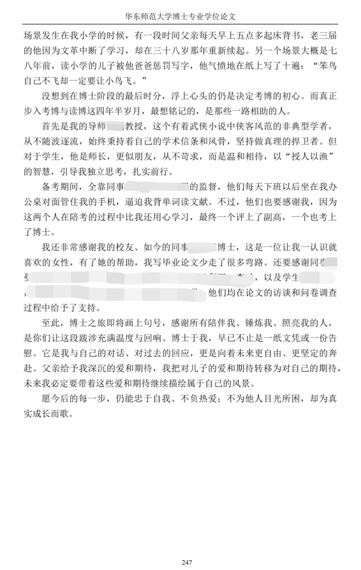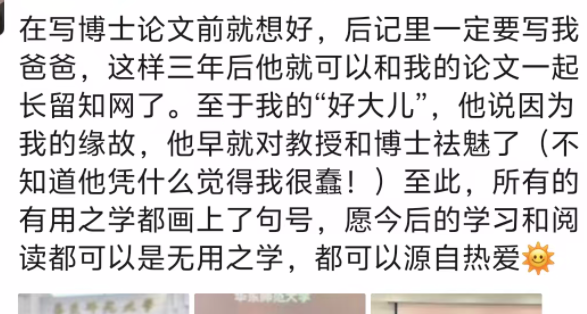 博士论文后记的最后一页,她这样写道:“愿今后的每一步,仍能忠于自我、不负热爱;不为他人目光所困,却为真实成长而歌。”