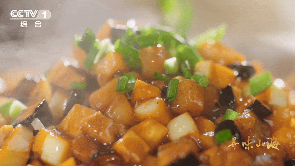 若要品其风骨,酱丁茭白则是最佳注脚。这道菜的灵魂伴侣,是德清洛舍传承百年的黑豆腐干。豆腐经反复压榨、秘制酱汤久煮,通体乌亮,咸香韧滑。将其与茭白同切为大小均匀的骰子丁,在锅中短暂相逢。出锅前勾一勺玻璃芡,让酱香与清甜紧紧相拥。入口,豆腐干的韧与茭白的脆,黑干的咸香与白茭的清甜,在鲜明的对比中,达成了一种富有嚼劲的、层次分明的润泽感。
