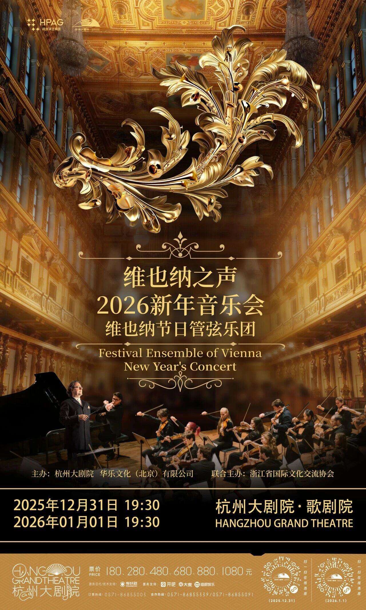 2025年12月31日与2026年1月1日,享誉世界的维也纳节日管弦乐团首次登陆杭州大剧院,为浙江观众带来两场纯正典雅的维也纳新年音乐会。本次音乐会由浙江省国际文化交流协会与杭州大剧院等单位联合主办,为浙江观众献上一份极具仪式感的新年艺术厚礼。