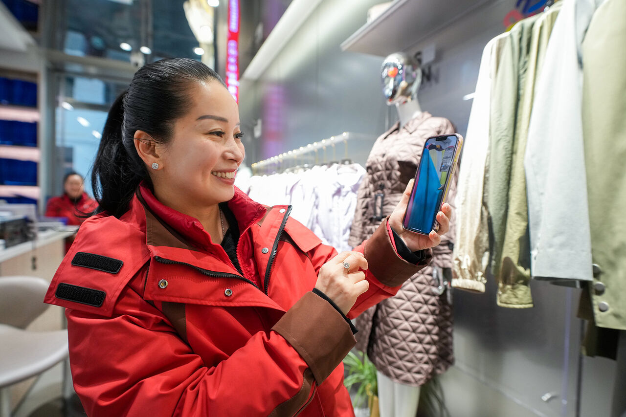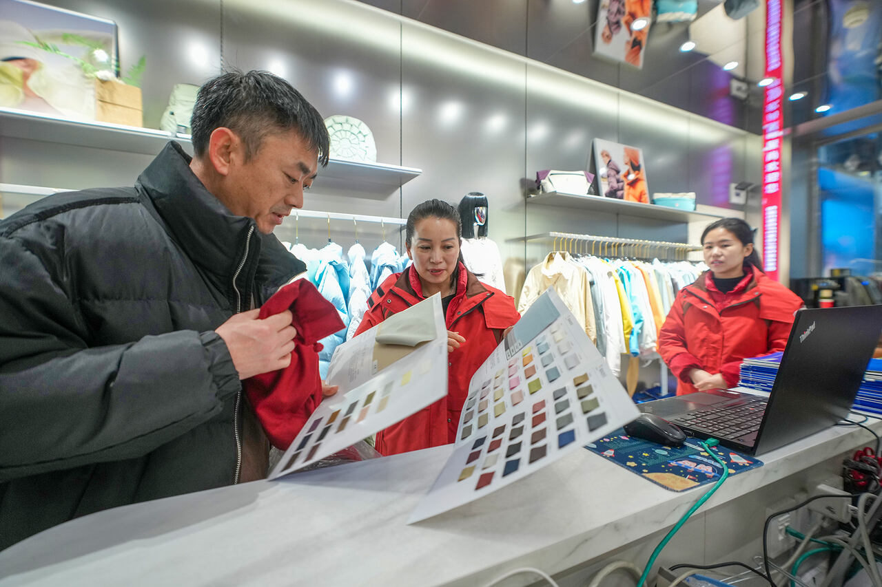 市场活力线上线下同步迸发。“佳诚纺织”负责人杨燕介绍,尽管雨天让线下客流稍减,但线上咨询和订单却持续不断。今年新款面料全面升级,如防晒指数提升至100+,羽绒面料更轻、更密,“我们准备好了”。
