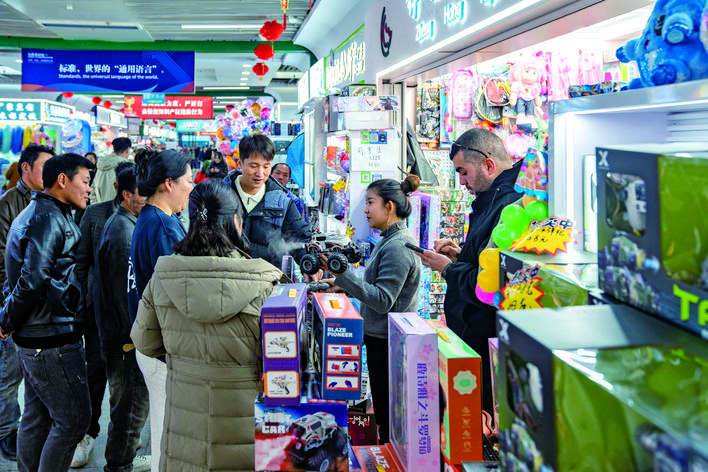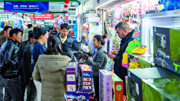 连日来,义乌国际商贸城内人头攒动,国内外采购商络绎不绝。马年潮玩、智能玩具、滑雪装备等产品成为新宠。