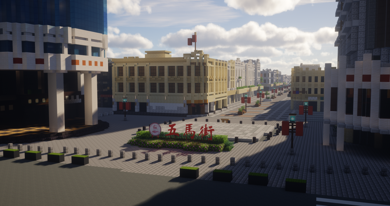 《我的世界》里的温州标志性建筑,上图是江心屿,下图是五马街。受访者供图