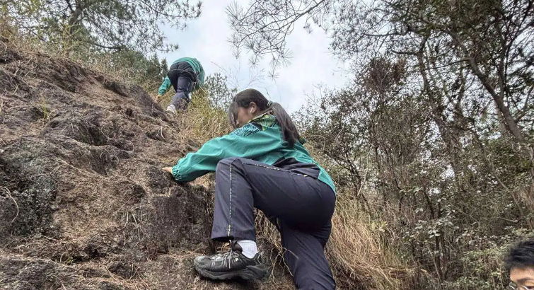 行进途中,老师们和领队同学分工明确,分别驻守在队伍的前、中、后关键位置,精准把控行进节奏,带领大家打卡多条兼具生态价值与文化底蕴的特色丛林路线。面对陡坡的挑战、荆棘的阻拦,同学们没有退缩,而是相互鼓励、彼此照应,有人主动帮扶体能较弱的同学,有人及时提醒前方的路况,将课堂上学到的户外安全知识灵活运用到实践中。与此同时,大家都牢记“无痕山野”理念,不随意丢弃垃圾,主动守护沿途的一草一木,在点滴行动中深化了团队协作意识与生态保护责任感。