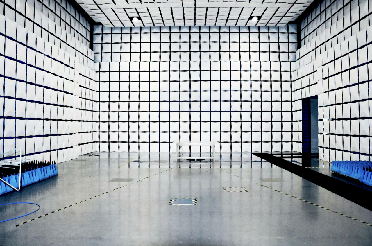 EMC10米法暗室测试平台,有一个10米高的电波暗室,机器人可以在里面边走边测,模拟真实工作中产生的电磁信号,确保它既能稳定工作,也不干扰其他设备;