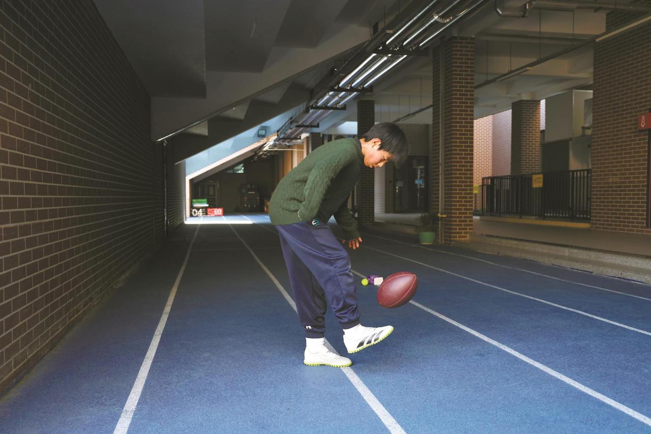 在学校浓厚的足球氛围下,葛治平成长迅速。如今,他不仅成为校队主力,更一路走进区队、市队。而他的颠球训练,也变得更有挑战性、趣味性,不仅能颠球上下楼,还会尝试颠起纸巾、网球、橄榄球等形状迥异的物体。