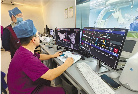 常栋利用心脏手术机器人为患者进行导管消融手术。 记者 周楷华 李文瑶 摄