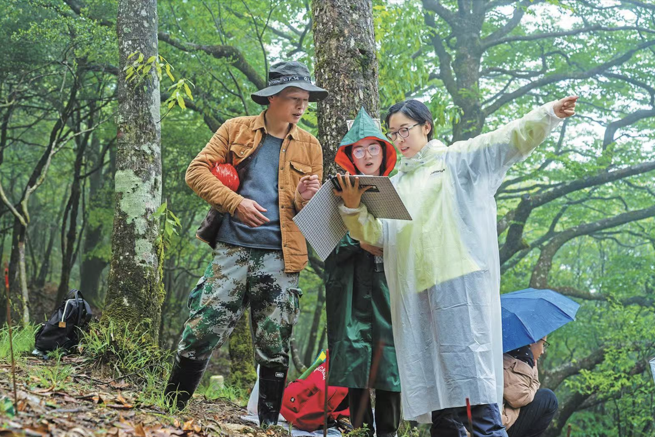 工作人员在记录百山祖冷杉的生长情况 受访者供图