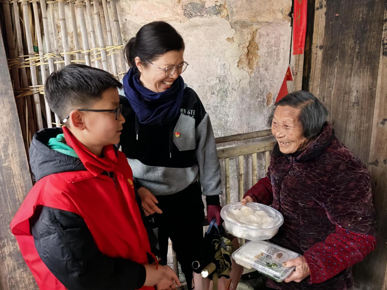 90岁的潘阿条接过餐盒时激动地说:“谢谢你,下雪天还上来送餐,辛苦了。”这样真挚的感谢,成为志愿者们心中最温暖的回报。