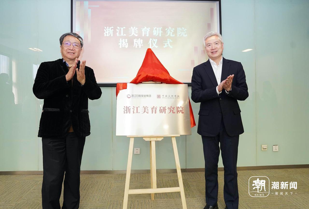 浙报集团社长、党委书记姜军和中国文联副主席、浙江省文联副主席、西泠印社副社长兼秘书长、教育部高等学校美术学教学指导委员会副主任委员陈振濂共同为浙江美育研究院揭牌。浙江美育研究院聘请中国文联副主席、浙江省文联主席、中国油画学会会长、中国美术学院学术委员会主任许江为总顾问,聘请陈振濂,中国女画家协会顾问、中国美协少儿艺委会原主任何韵兰,华东师范大学艺术学院教授、博士生导师、教育部普通高中美术课程标准修订组组长钱初熹,中央美术学院教授、中国美协少儿艺委会主任郑勤砚为顾问委员会成员;聘请尹少淳、王中焰、王樱、王卫华、孔耘、朱敬东、李永正、陈永怡、冷莹、竺照轩、胡知凡、赵辉、贾小川、谢丽芳、甄巍为学术委员。