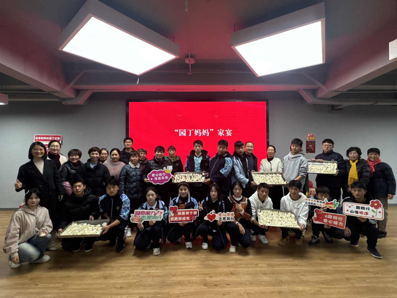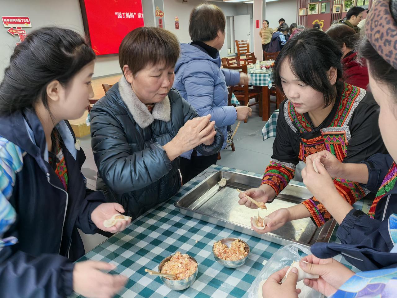 1月23日下午,鄞州区东柳街道宁波职教中心学校食堂内热气蒸腾、欢声笑语。25电商(凉山班)的同学们与他们的“园丁妈妈”们围坐在一起,揉面、擀皮、包馅。