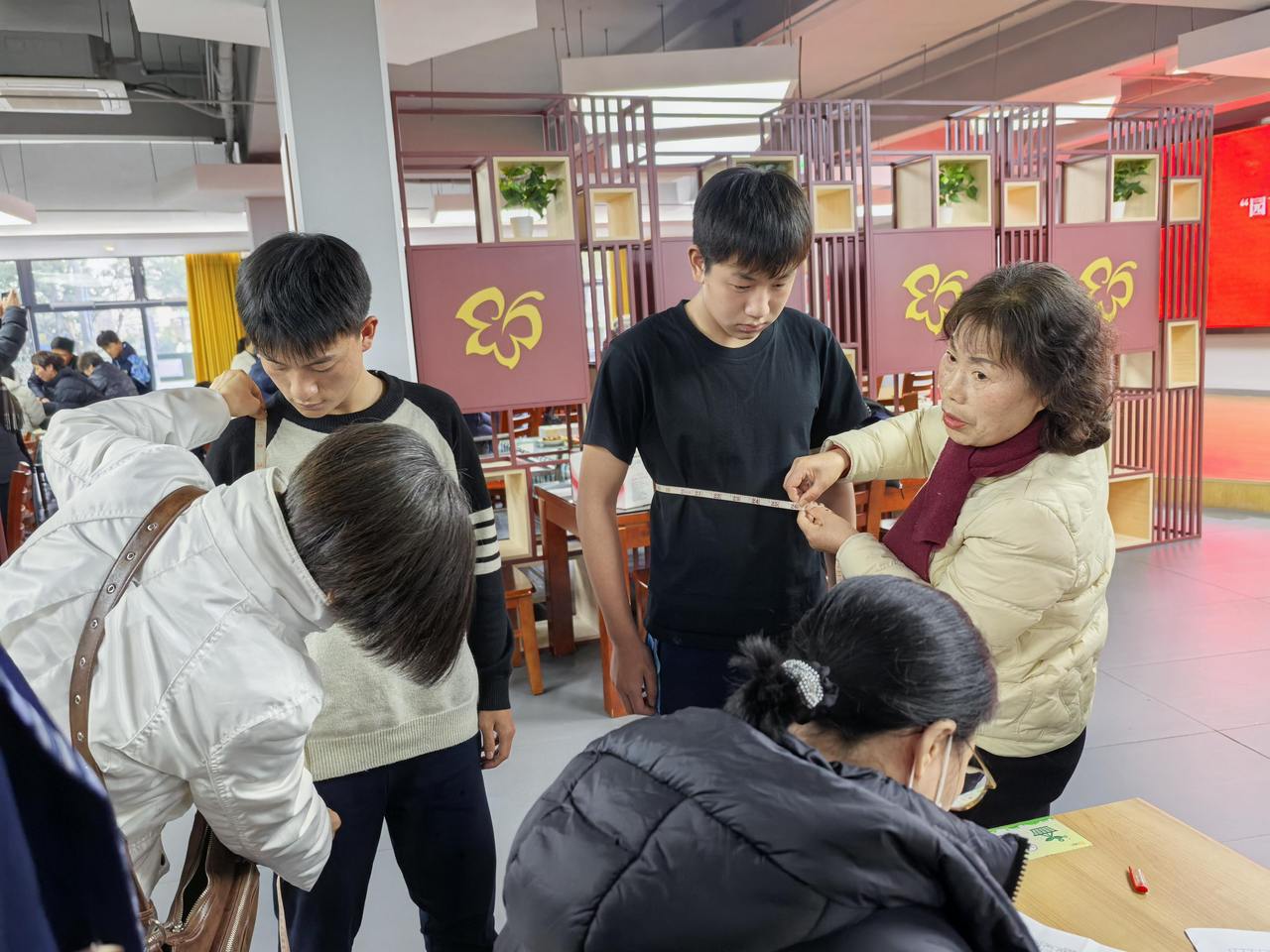 图为毛衣奶奶团队为凉山班学生量体。通讯员 供图