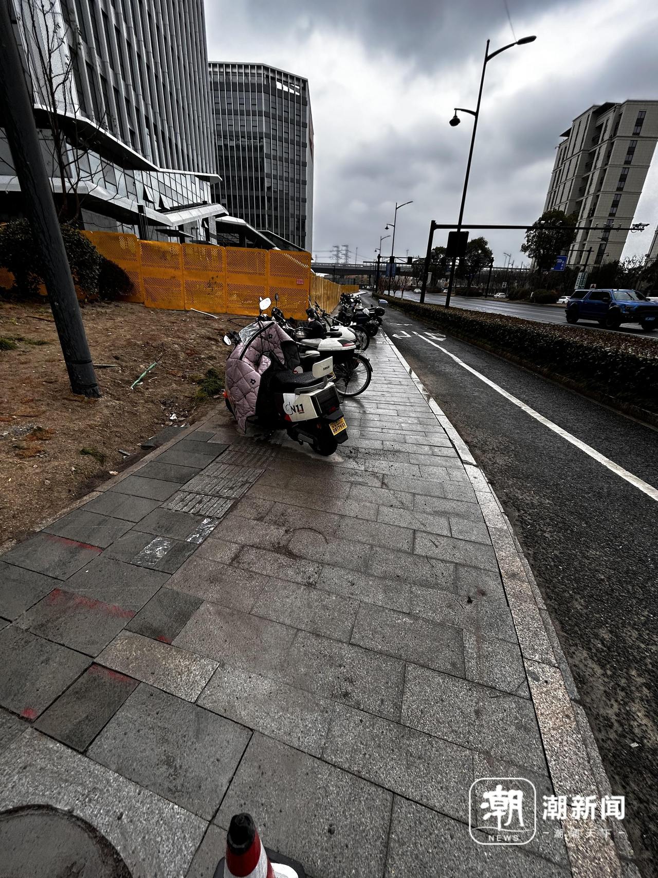 该负责人也表示,乔司南地铁站原本设有三个保安室,用于监管非机动车停放。但受留用地建设的影响,目前仅剩下一个保安室在正常运转。同时,片区内缺少明显的停车疏导标志,不少通勤市民不知道附近究竟有哪些可用的停车场。“从1月27日开始,乔司南城管中队将针对乔司南站周边的违停问题开展专项整顿:在地铁站出入口、路口等醒目位置设置疏导标志,指引市民在指定位置停放车辆;同时,也会加派人手加强巡逻管控,对违规停放在人行道上的非机动车,依法采取拖车、锁车等处置措施,切实保障人行道的畅通。”