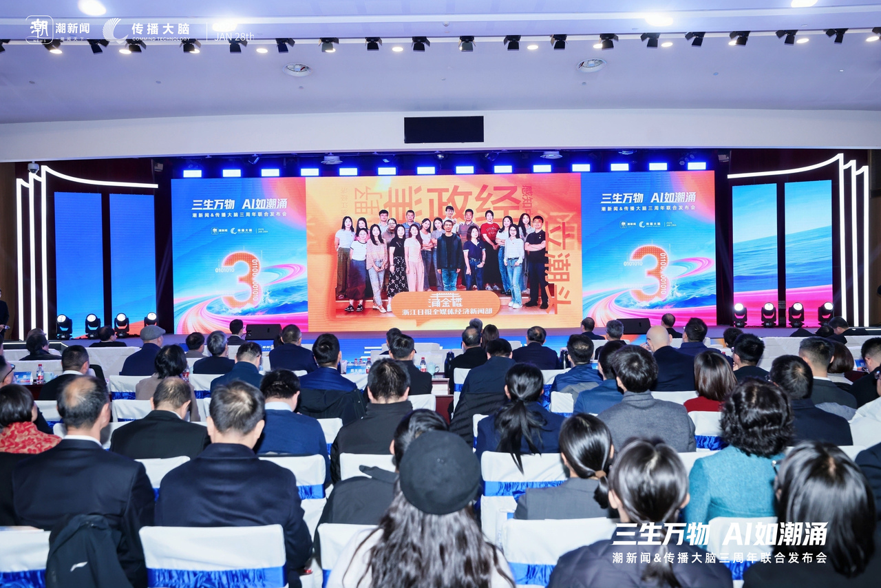 2026年1月28日,“三生万物 AI如潮涌”潮新闻&传播大脑三周年联合发布会在浙江杭州体育场路178号浙江日报报业集团举行。