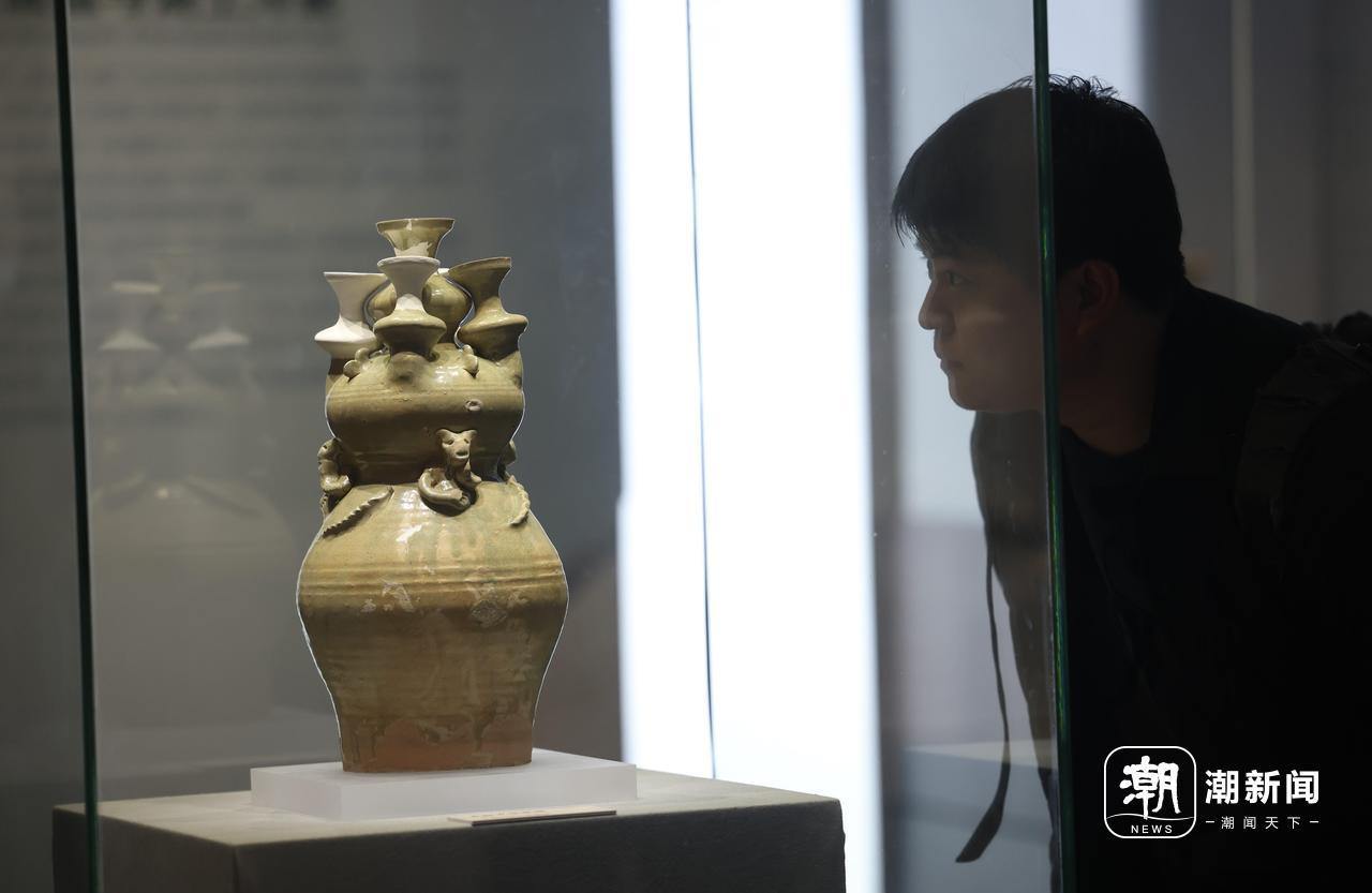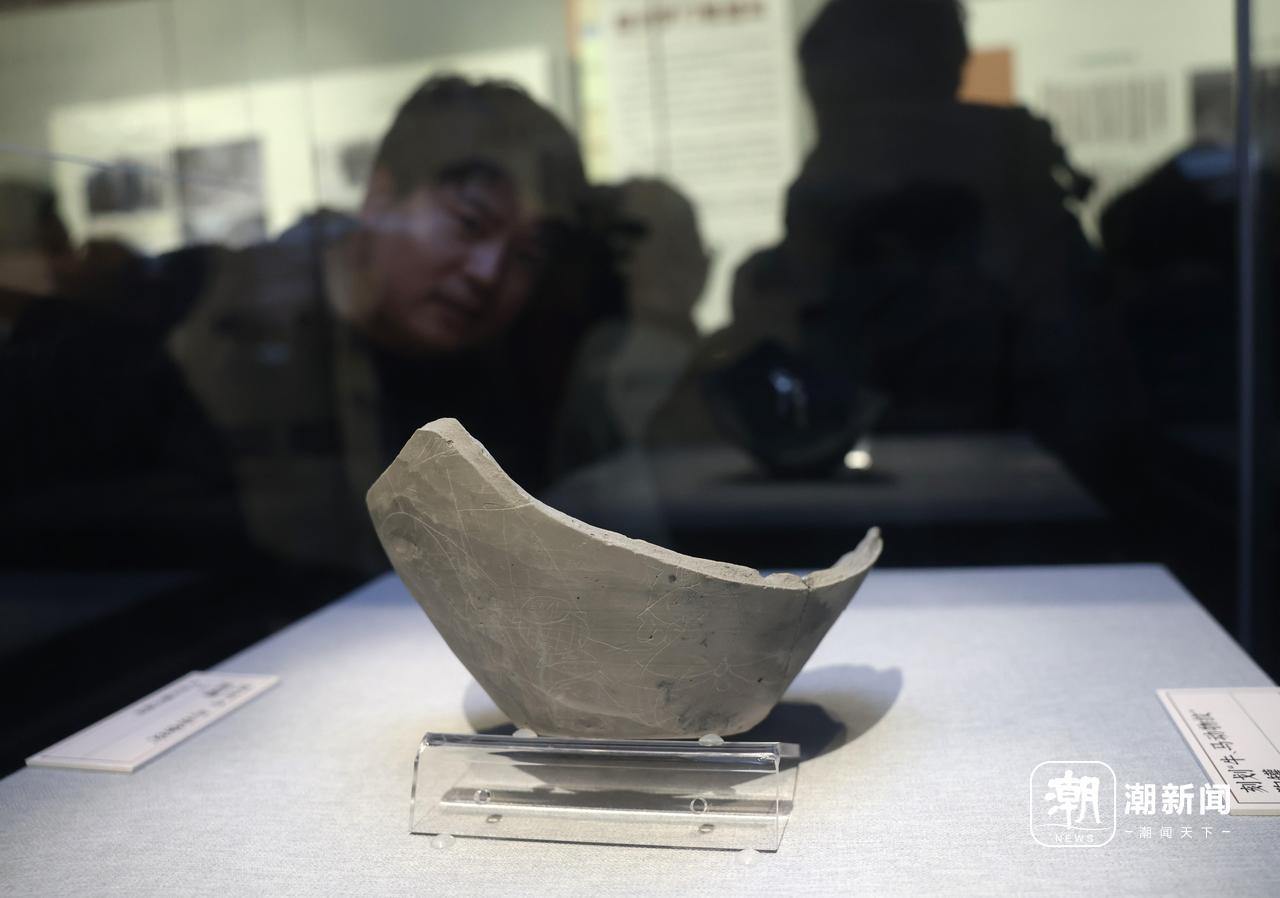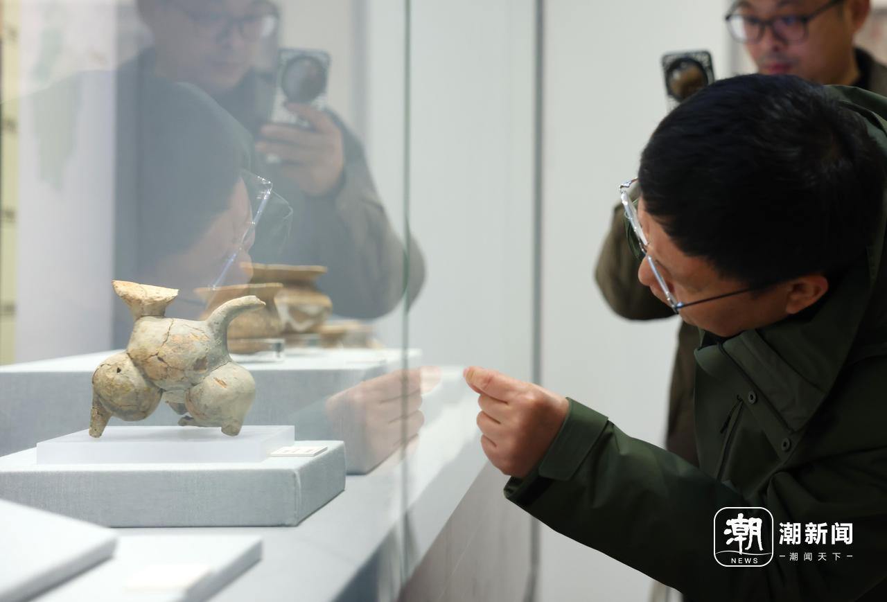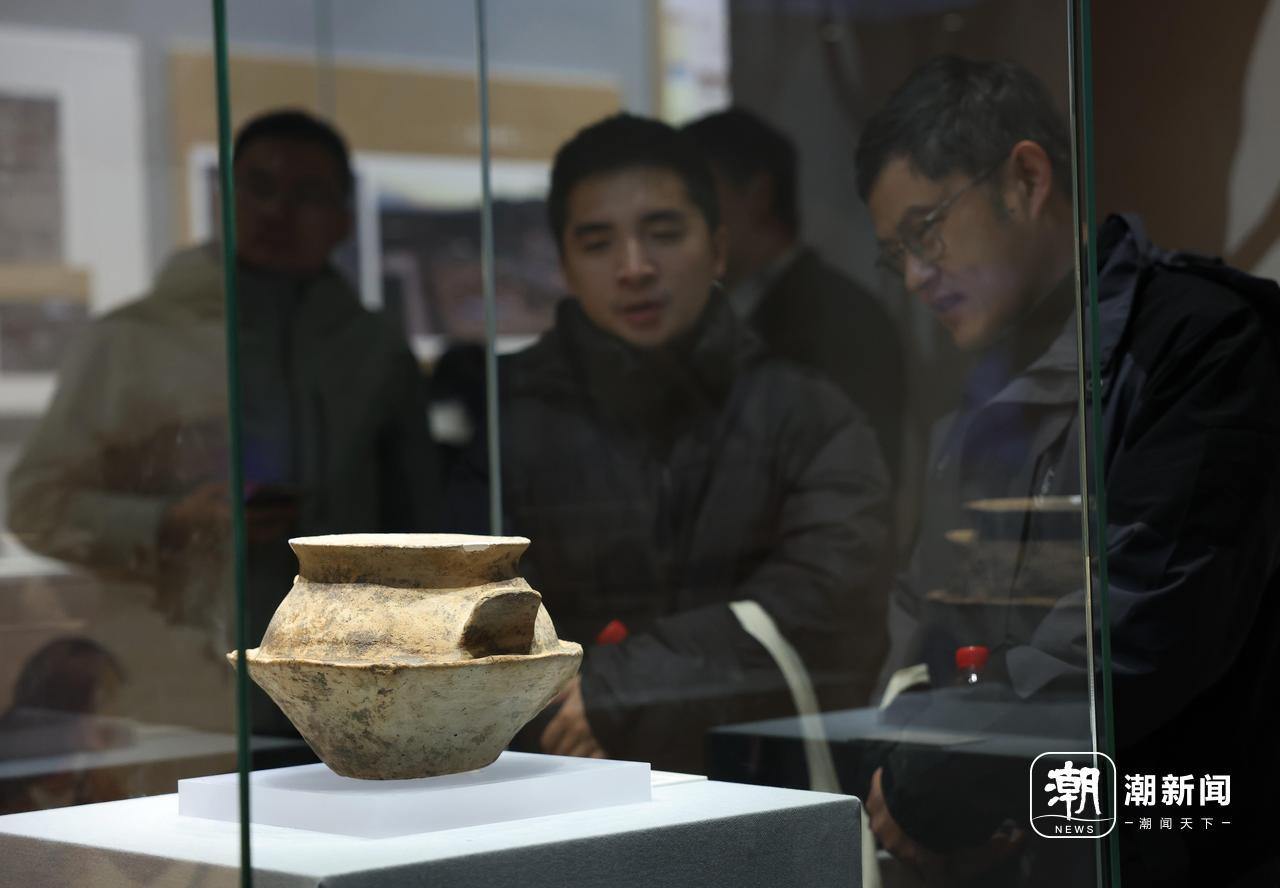 绍兴稽中遗址出土的牛马纹陶罐吸引不少观众驻足。
