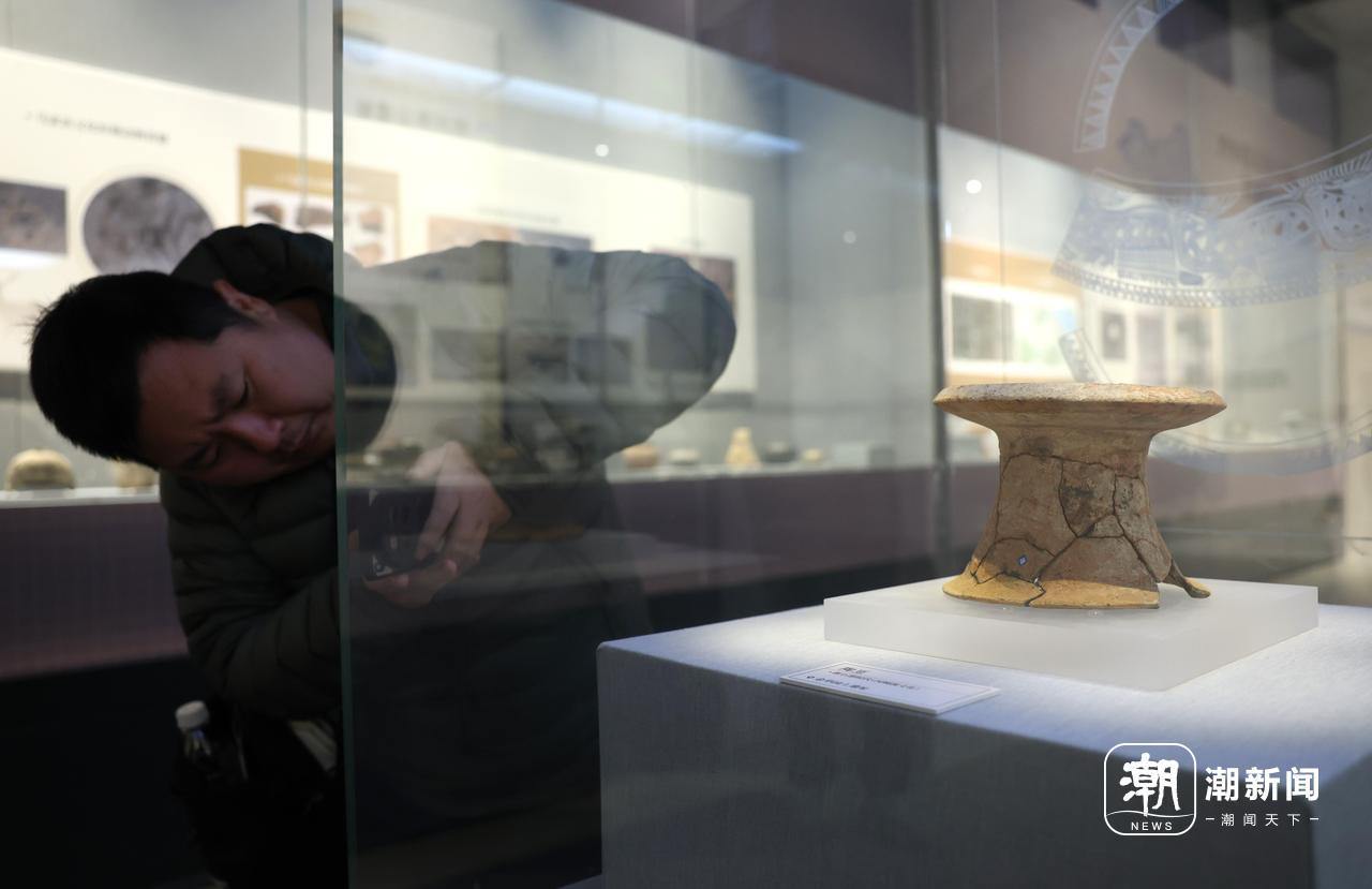 金华园上遗址出土的彩陶豆吸引不少观众驻足。