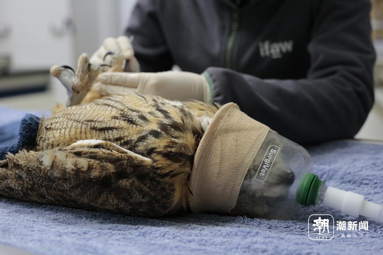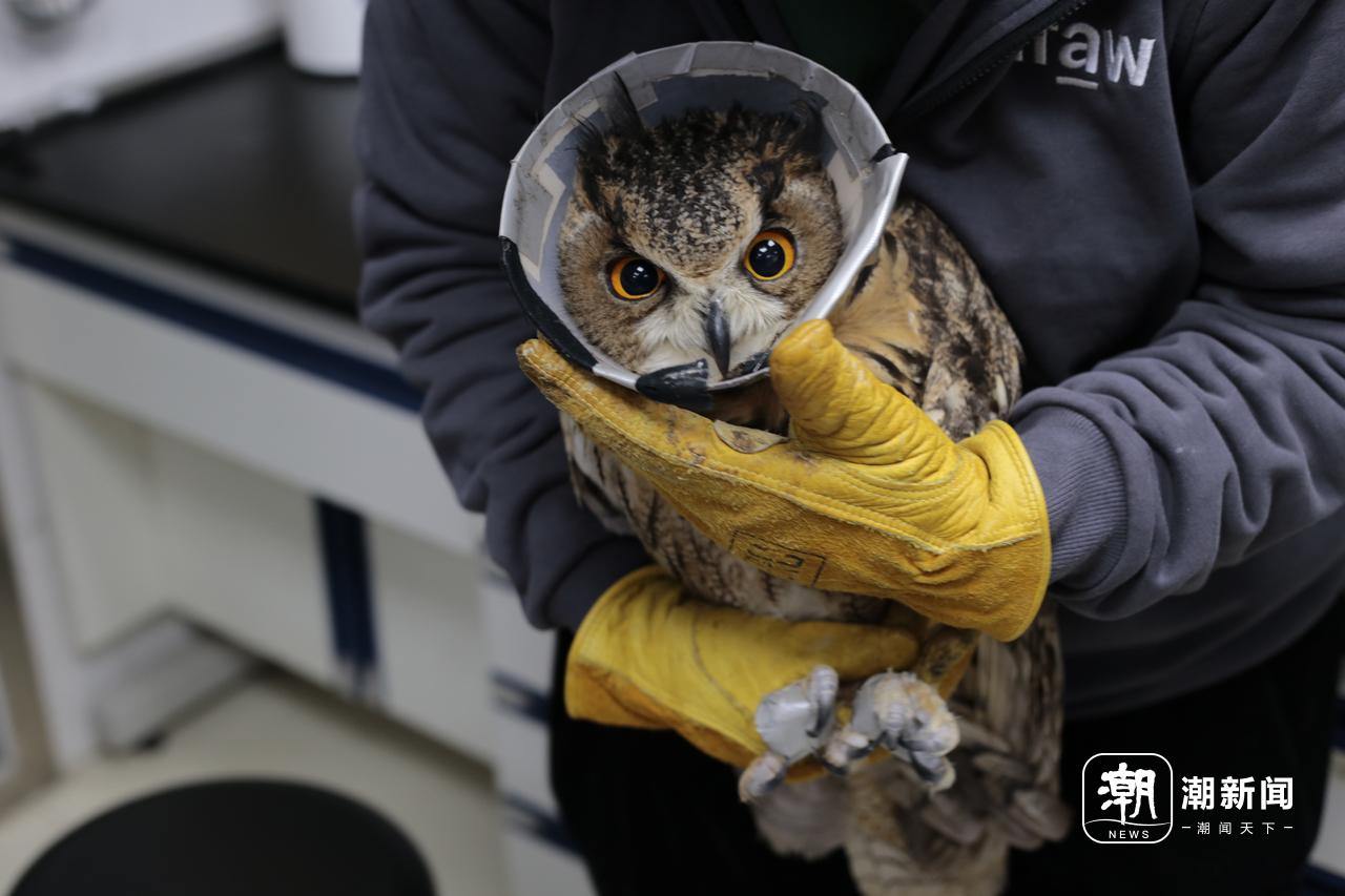 在接受治疗的雕鸮。记者 朱亮羽 摄